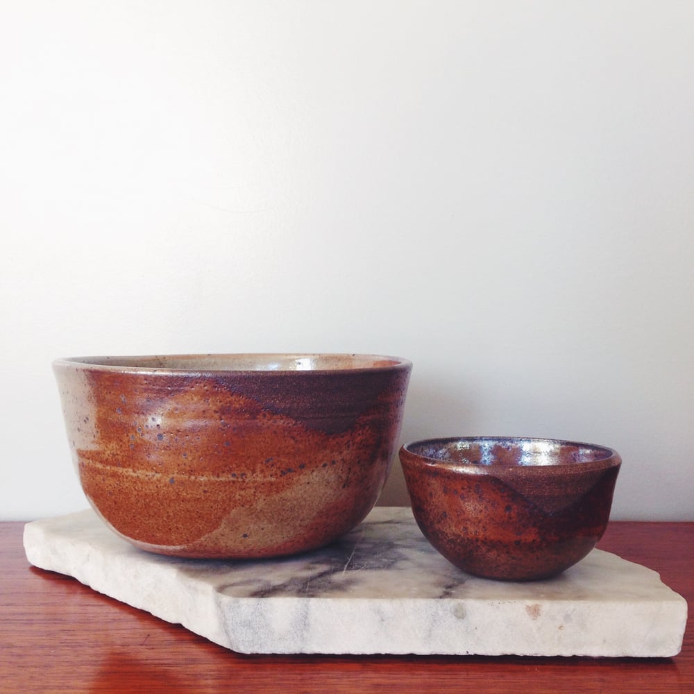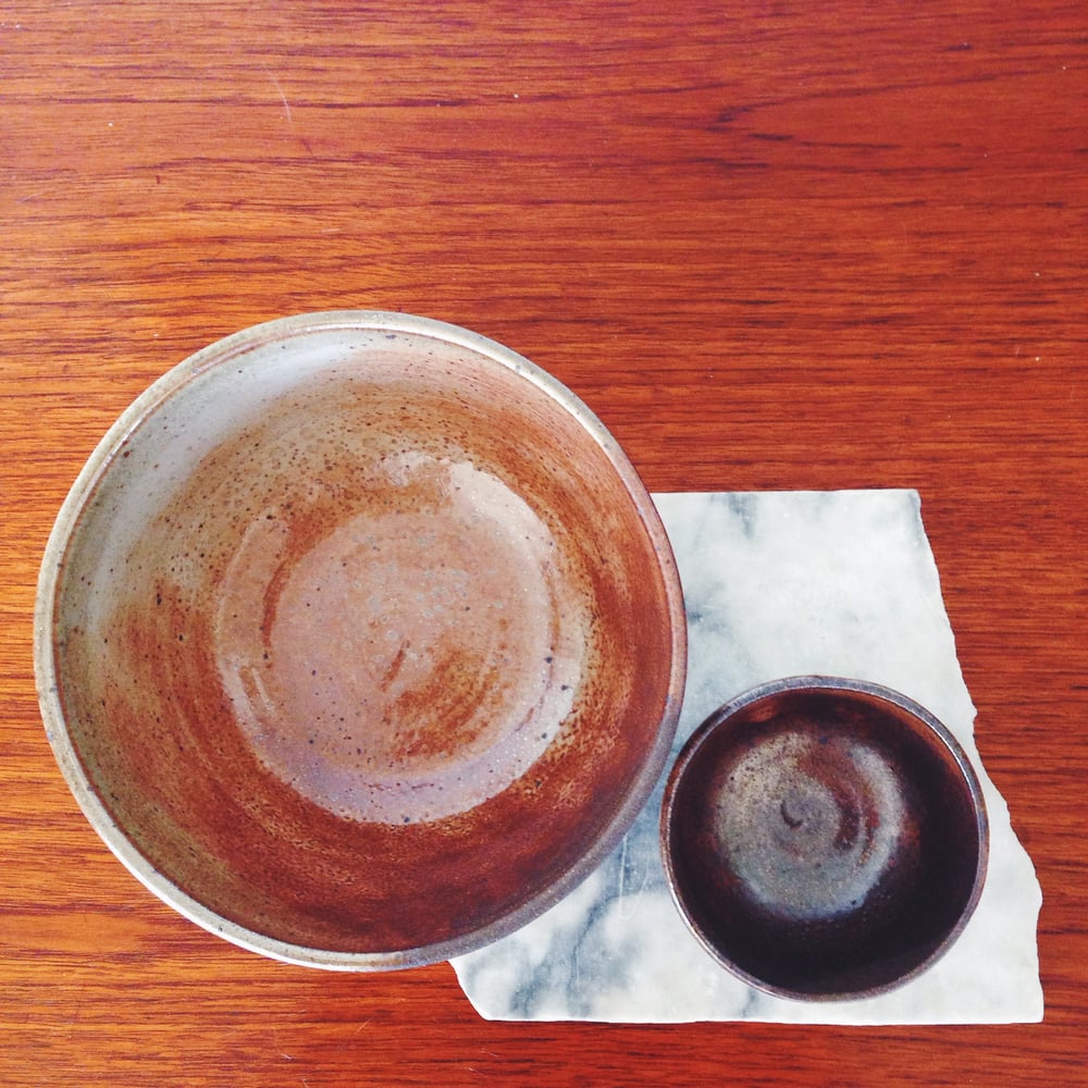 chocolate stoneware bowls in classic shino
